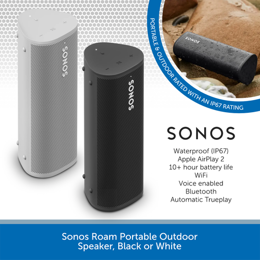 Sonos Roam Portable Outdoor Speaker, Black or White
